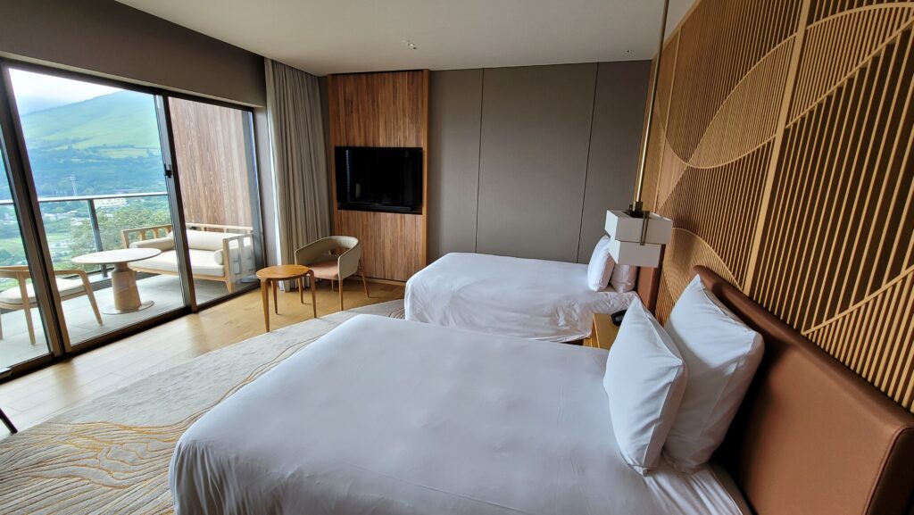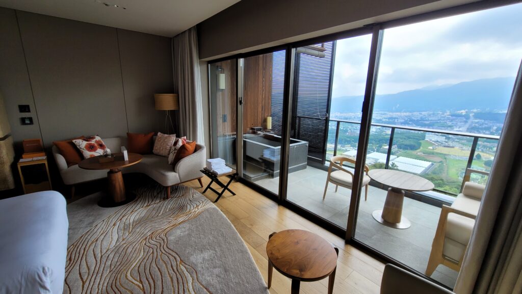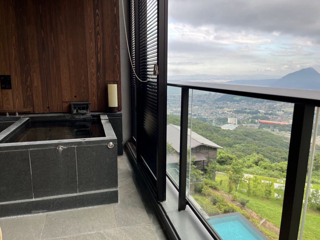 ネットで部屋の写真は見ていたものの、当たり前ですが写真より実物の方が立体感を感じられて素敵でした。景色も別府湾、市街地、山々などが見渡せて最高です。