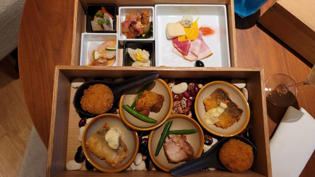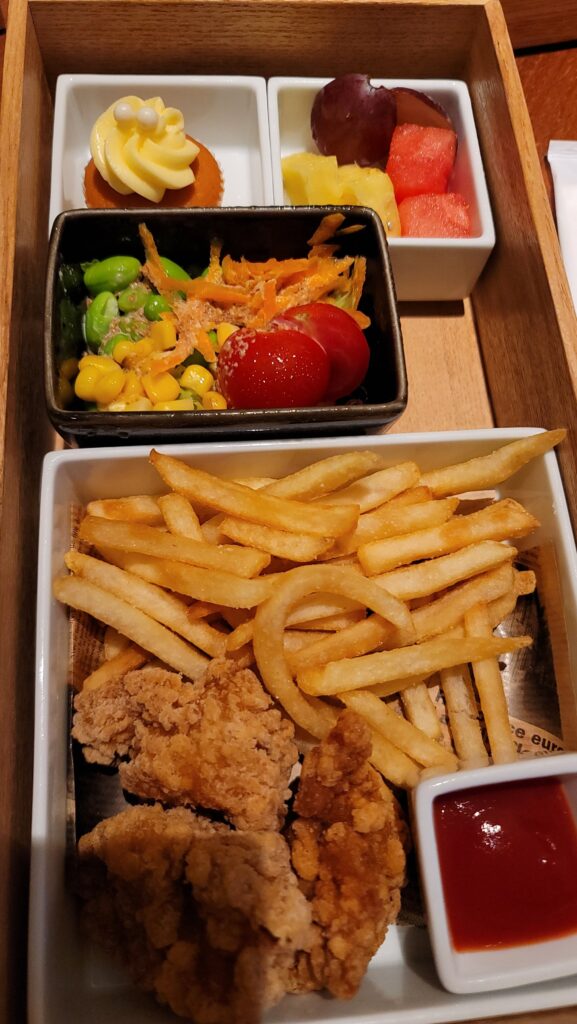 夕飯の付いていないプランでしたが、クラブラウンジでオードブルのサービスがあります。12歳以下は17時以降入室出来ないのですが、子連れにはそれらのメニューを部屋まで持ってきてくださるという神サービスが提供されています!飲み物も頼んだ分だけ持ってきてくださいました。(アルコールを三種類ほど持ってきてもらいました)また、子ども用のカナッペも用意してくださり、もはや夕飯不要でした。
