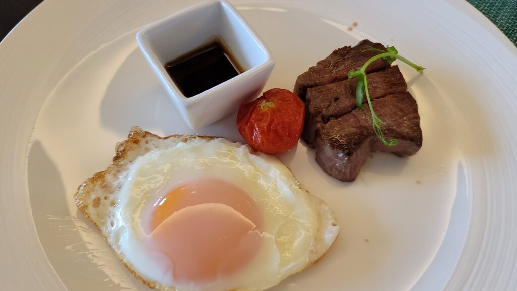 通常のビュッフェメニューも豊富で目移りするのに特別メニューは頼まずにはいられない豪華メニューです。中でも蟹のオムレツキャビア添えとステーキは絶品です。