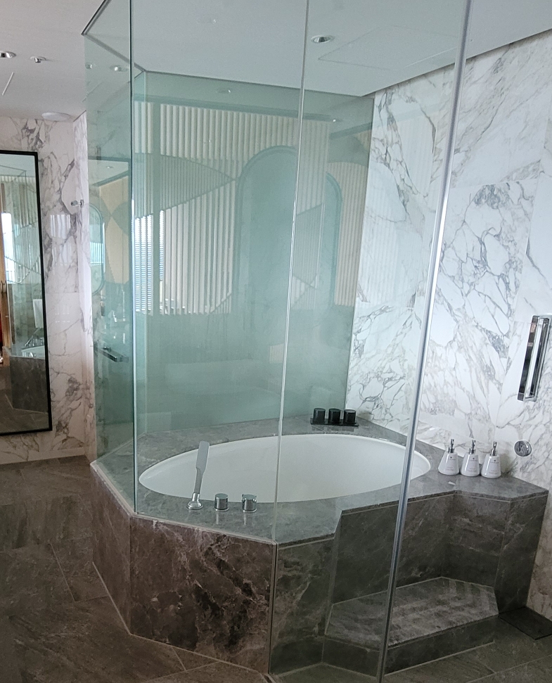 到着すると、周囲の山道とはかけ離れたモダンでラグジュアリーな雰囲気の外観に期待が高まります。今回はクラブフロアのクラブインターコンチネンタルツインに宿泊ということでチェックイン時刻より少し早く着いたのですが、すぐにクラブラウンジに通してくださり、チェックイン手続きをしてくださいました。14時からアフタヌーンティーの時間なので15時前に着いてもこちらでゆっくり出来るようです。この日はお部屋の用意が整っているということだったので、外が暑いうちにプールをと思い、まずお部屋に入らせて頂きました。