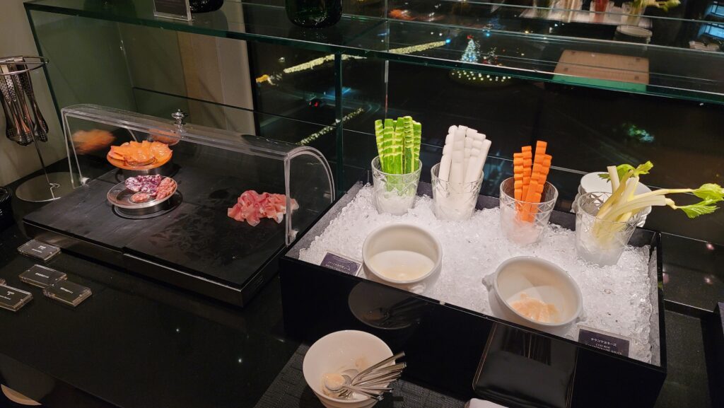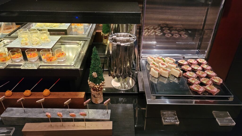 このラウンジの特徴は何と言っても1日6回のフードプレゼンテーション。アフタヌーンティーに始まり、オードブル、ナイトキャップ。翌日も朝食、モーニングスナック、ランチ、と食が大好きな我が家にとっては天国のようです。