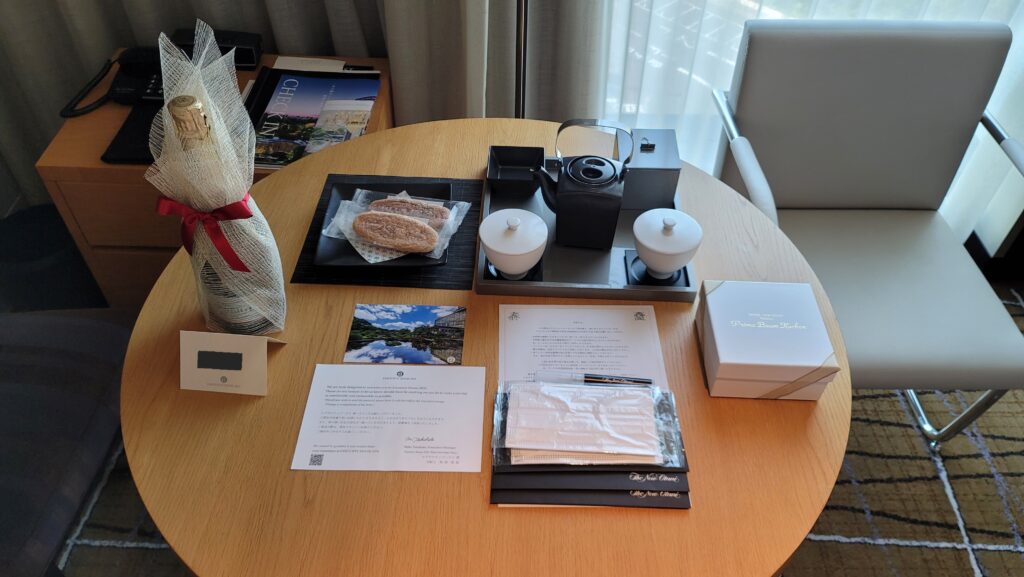 そしてチェックインのために11階のラウンジへと向かいます。座席に案内され、ウエルカムドリンクの飴湯を頂きます。この飴湯がとても美味しく、毎回楽しみにしています。