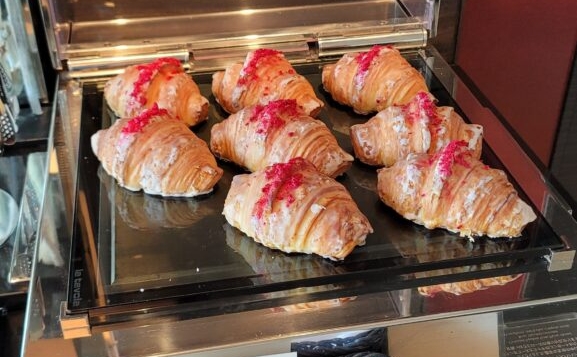 さらにはニューオータニならではのピエールエルメとのコラボスイーツも。季節によって変わるのですが今回はクロワッサンイスパハン。フランボワーズとライチ、ローズの風味が見事にマッチして大きいですが美味しいのでつい食べてしまいます。