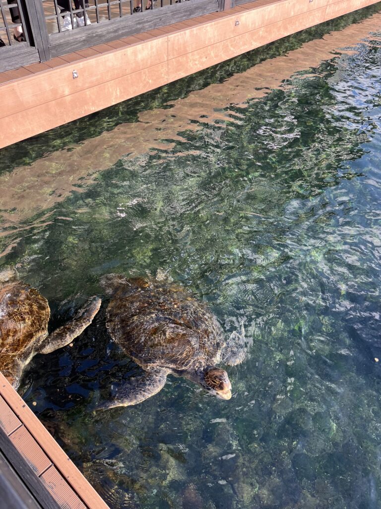 「マラルンガ」は和洋に加えて琉球料理もあり種類が豊富でたくさんの料理が楽しめます。シャンパンフリーフローはありませんが、アラマンダのエントランス前にたくさんのウミガメが泳いでおり、こちらでも餌やり体験をさせてもらえます。少し歩きますがウミガメの数はこちらの方が多いです。