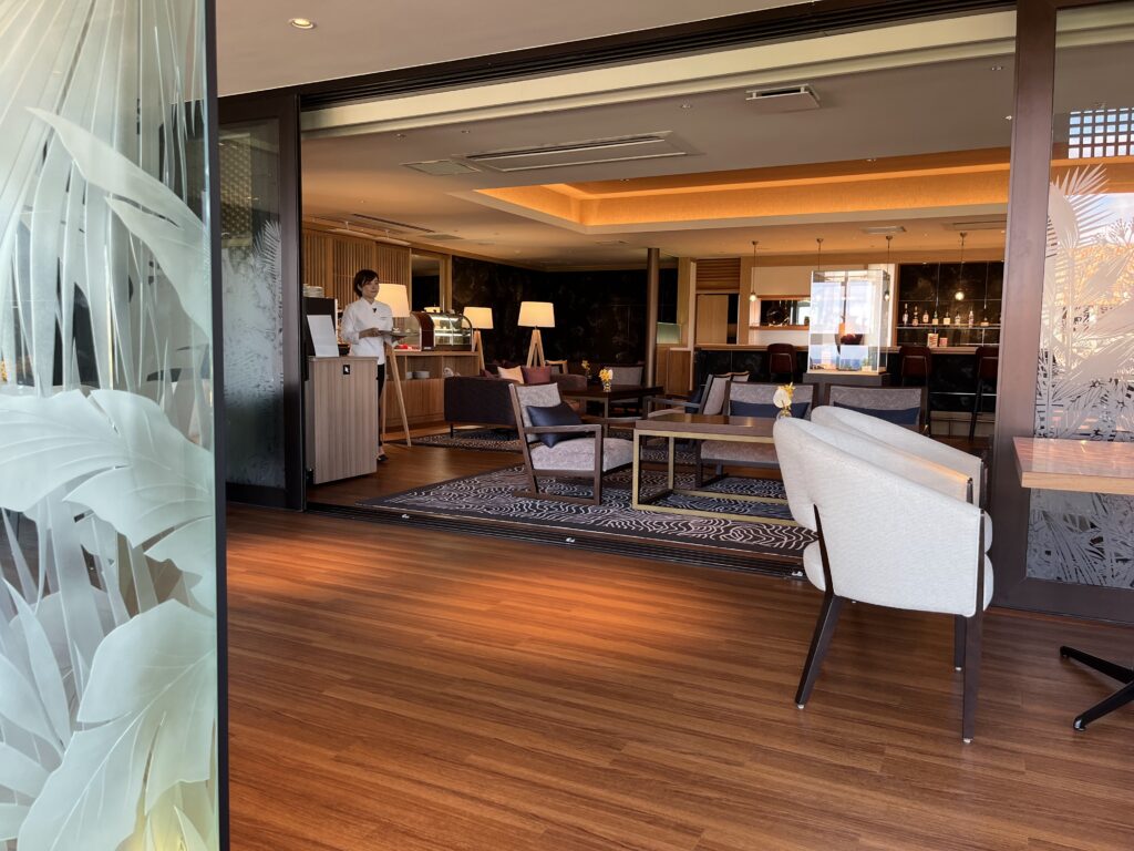 クラブラウンジはベイサイド館2階にあり、海が眺められるゆったりとした空間です。